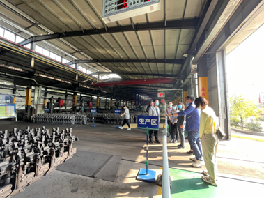 仪式结束后,在工程师武文凯的带领下,必威西汉姆联一行人参观考察了部分生产车间,实地了解了企业的产品、生产流程、废弃物排放等。