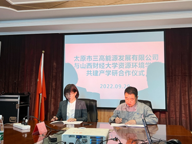 班凤梅院长介绍了学院沿革、专业设置、科研成果与项目、科研转化等方面的情况,表示在当今生态文明建设和“双碳”的双重机遇下,学院应积极推动与当地企业合作,在环境保护、生态文明、“双碳”等领域寻求落脚点,共谋区域经济发展。最后双方就太原三高能源发展有限公司与必威西汉姆联共建产学研达成合作意向,并签订了合作协议书。
