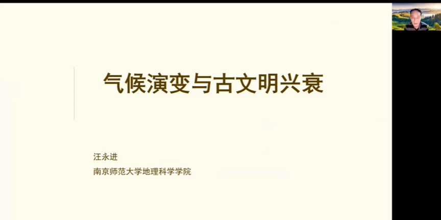 汪教授从古气候与古文明学术争议、东亚季风气候历史、“雨水化石”石笋记录、从石笋记录论中原文明的起源、中原文明演进与季风降水的关系等5个部分讲解了相关内容。
