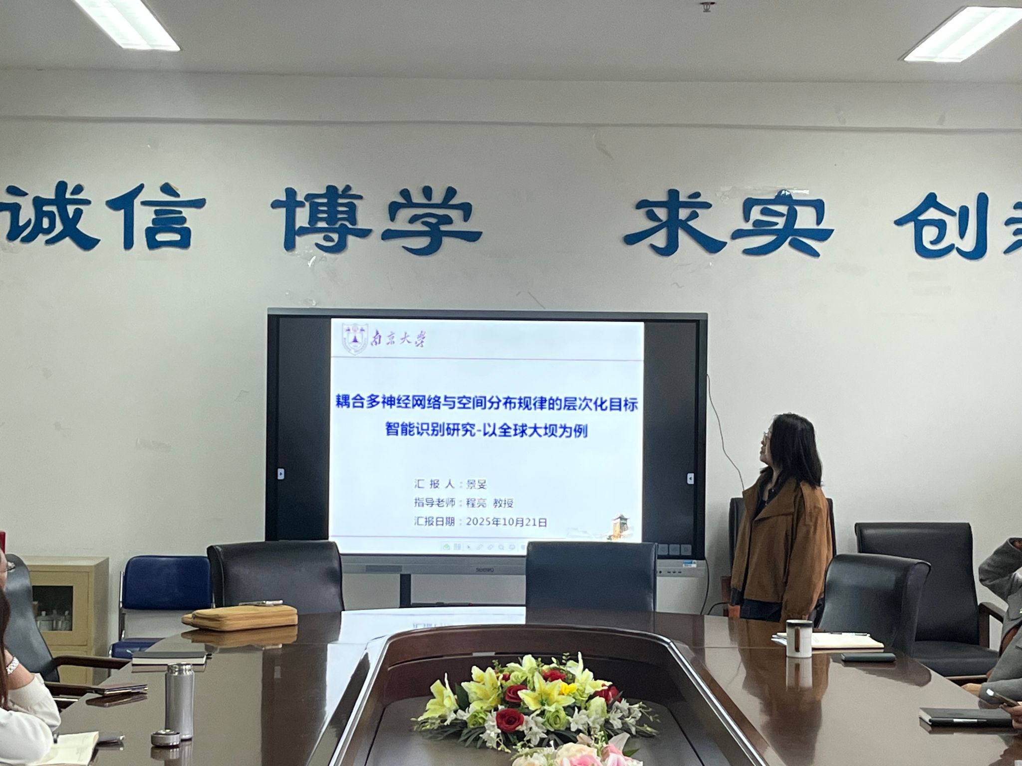 景旻博士的报告内容充实、视野开阔,深入展示了多神经网络与空间分布规律耦合在遥感智能识别领域的创新应用成果,充分体现了智能算法在地理空间信息挖掘中的前沿探索与跨学科融合价值。报告不仅呈现了最新研究进展,也为学院教师在智能遥感识别、地理空间模式分析以及大数据驱动的环境认知等方向提供了新的思路与启示。在交流讨论环节,与会教师还对景旻博士去年申报的基金项目申请书进行了系统回顾与分析,结合专家评审意见,从科学问题的凝练、研究方案的可行性以及研究内容的逻辑结构等方面提出了诸多建设性建议。整个交流过程气氛热烈、互动充分,不仅为下一年度基金项目的高质量申报积累了宝贵经验,也营造了浓厚的科研探讨与合作创新氛围。
