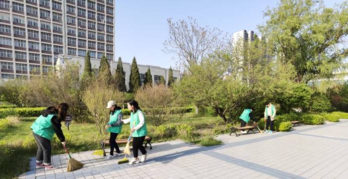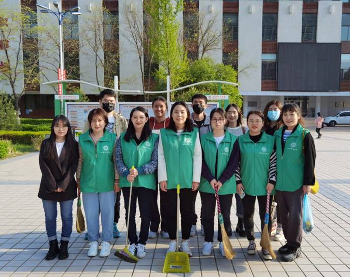 活动中,每一位党员同志充分发挥党员的先锋模范作用,身穿绿色马甲积极参与,手持扫把、抹布、水桶,哪里脏去哪里,或俯下身,捡拾绿化带里的白色垃圾、雪糕棍、纸屑,或弯着腰,擦拭公告栏。2018级研究生预备党员王涛、姚振中等人还着重对垃圾桶以及附近进行了全面地酒精喷洒消毒……每一个“匆忙”的身影都在挥洒着劳动的热情,每一份撸起袖子加油干的劲头都化作保护地球的力量。