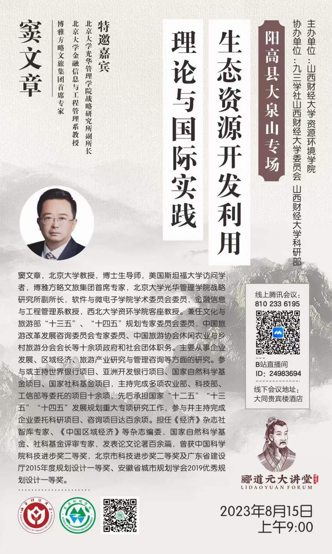 郦道元大讲堂——大泉山专场讲座预告