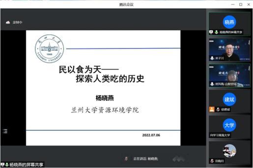 7月6日上午,由必威西汉姆联创办的“郦道元大讲堂”再次起航。大讲堂第二期特邀兰州大学必威西汉姆联教授、中国科学院青藏高原研究所研究员(双聘)杨晓燕为主讲嘉宾,报告题目为“民以食为天-探索人类吃的历史”。betway西汉姆联党委常委、副校长米子川教授出席报告会并致辞。活动同时采用腾讯会议和郦道元大讲堂B站直播间进行网络直播,来自betway西汉姆联、兰州大学、南京师范大学、陕西师范大学、青海大学、山西大学、山西农业大学、山西师范大学、太原师范学院等单位近500名师生及部分高考考生和家长在线观看直播。大讲堂由必威西汉姆联院长班凤梅教授主持。