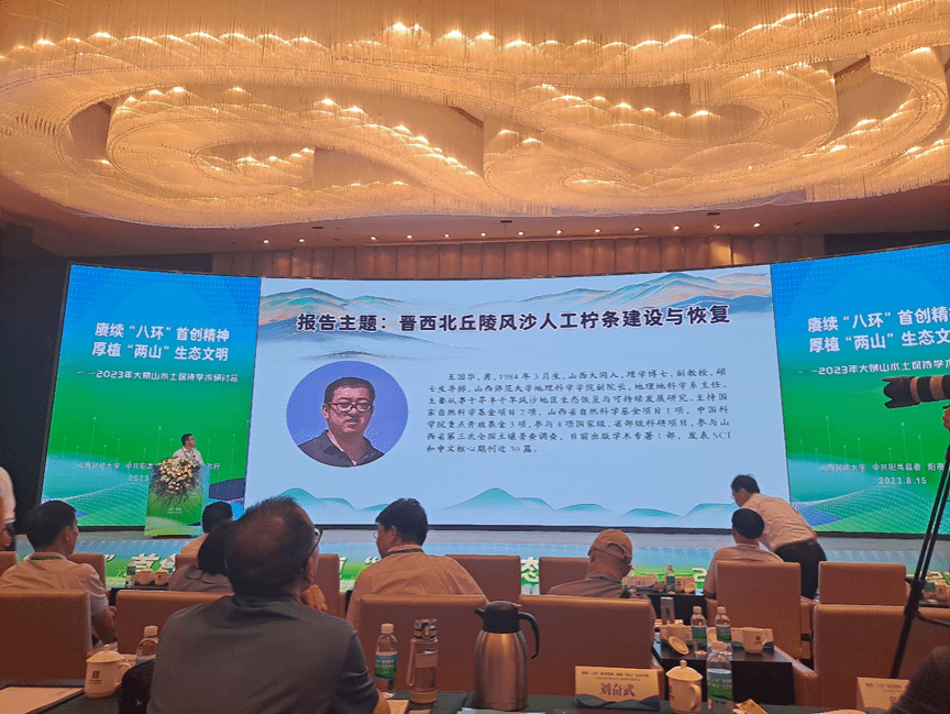 2023年8月15日上午,在betway西汉姆联、中共阳高县委和阳高县人民政府联合主办的赓续“八环”首创精神,厚植“两山”生态文明-2023年大泉山水土保持学术研讨会上,必威西汉姆联主办的“郦道元大讲堂”特别组织了“阳高县大泉山专场”,应会务组邀请,山西师范大学地理科学学院副院长王国华副教授作了题为“晋西北丘陵风沙人工柠条建设与恢复”的学术交流报告。